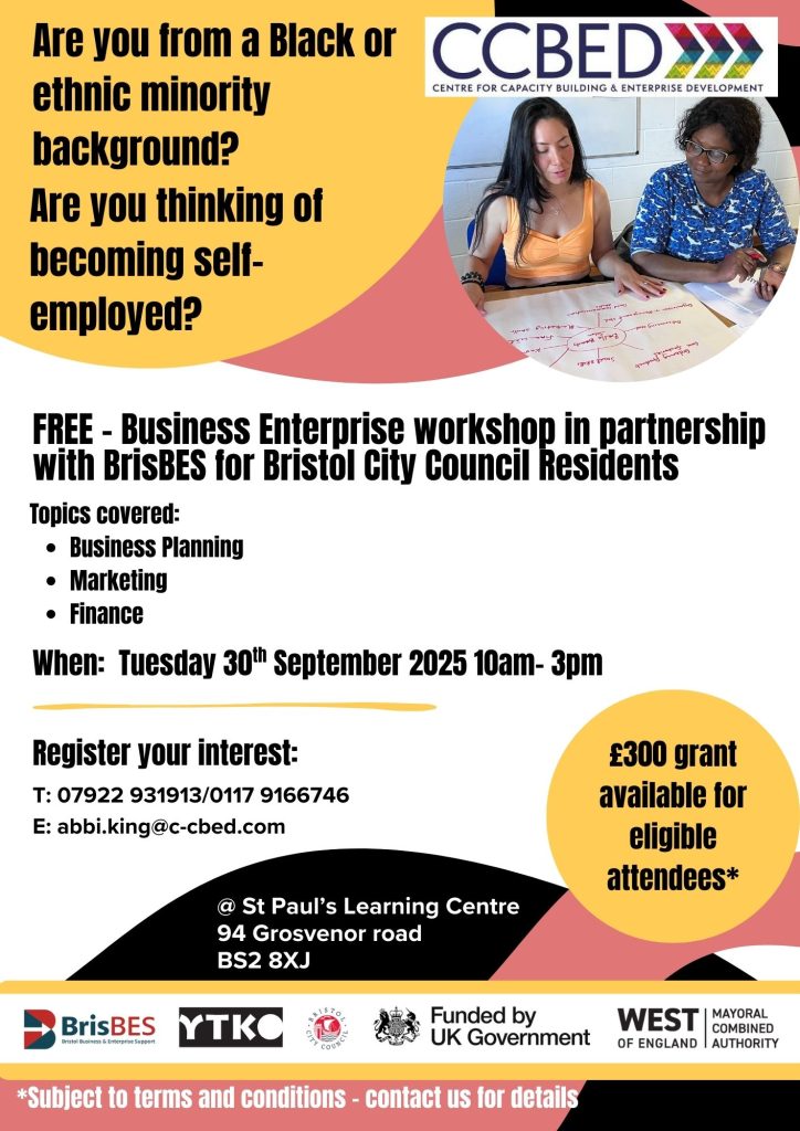Tekkdose is supporting the Centre For Capacity Building & Enterprise Development (C-CBED) to promote their free business enterprise workshop in partnership with Bristol Business & Enterprise Support (BrisBES).